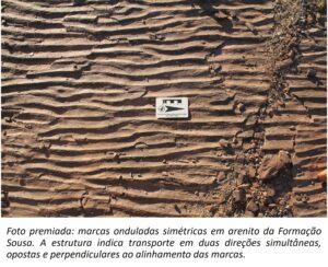 A fotografia premiada detalha marcas onduladas (ripple marks) simétricas, geradas por ondas em um arenito de 120 milhões de anos, da Formação Sousa, da Bacia Sedimentar do Rio do Peixe, no Estado do Paraíba. A formação é mundialmente famosa por possuir pegadas de dinossauros em grande quantidade, diversidade de tipos e qualidade de preservação. Trata-se de uma unidade geograficamente contemporânea ao objeto de estudo do aluno na mesma bacia. Além do prêmio, o aluno apresentou no evento parte de seu projeto de mestrado no trabalho intitulado “Evolução singenética de rochas arenáceas da Formação Antenor Navarro em sua seção-tipo – análise integrada por petrografia convencional e MEV – Cretáceo da Bacia Sedimentar do Rio do Peixe”.