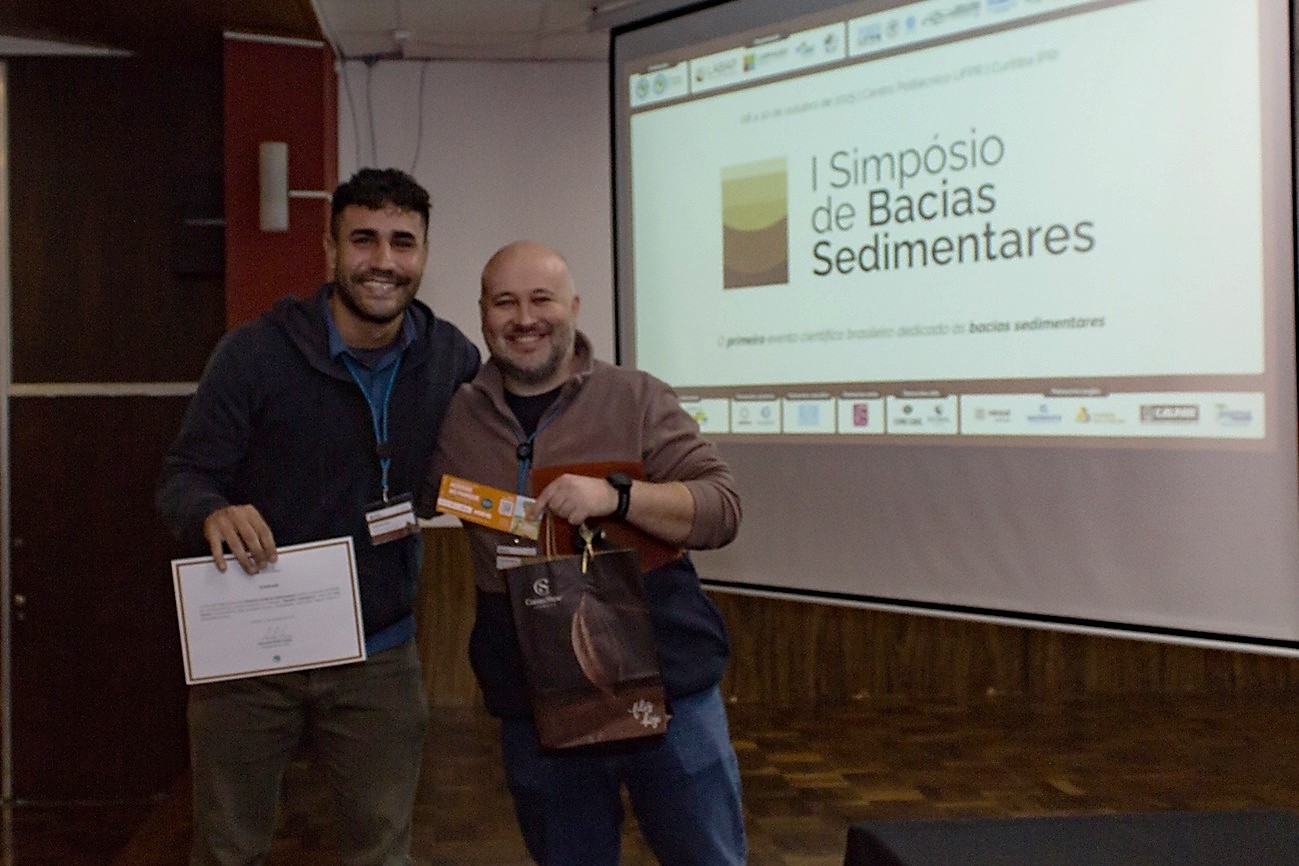 O mestrando Lawrence Barreto Sá, orientado pelo professor Daniel Rodrigues, foi agraciado em primeiro lugar com o prêmio de melhor fotografia científica na categoria “Detalhes Geológicos”, durante o 1º Simpósio de Bacias Sedimentares, realizado de 8 a 11 de outubro, em Curitiba (PR). O aluno participou do evento com auxílio financeiro do PPGG-UFC através de cota do Programa de Apoio à Pós-Graduação (PROAP).