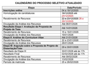 Processo seletivo 2026.1 – calendário atualizado